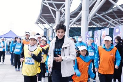 在北京奥林匹克森林公园举行的活动现场,主办方推出的“跑遍中国-世界儿童日主题宣传周”正式揭幕。启动仪式上,联合国儿童基金会大使陈坤与青少年代表曹天健进行了互动跑步环...