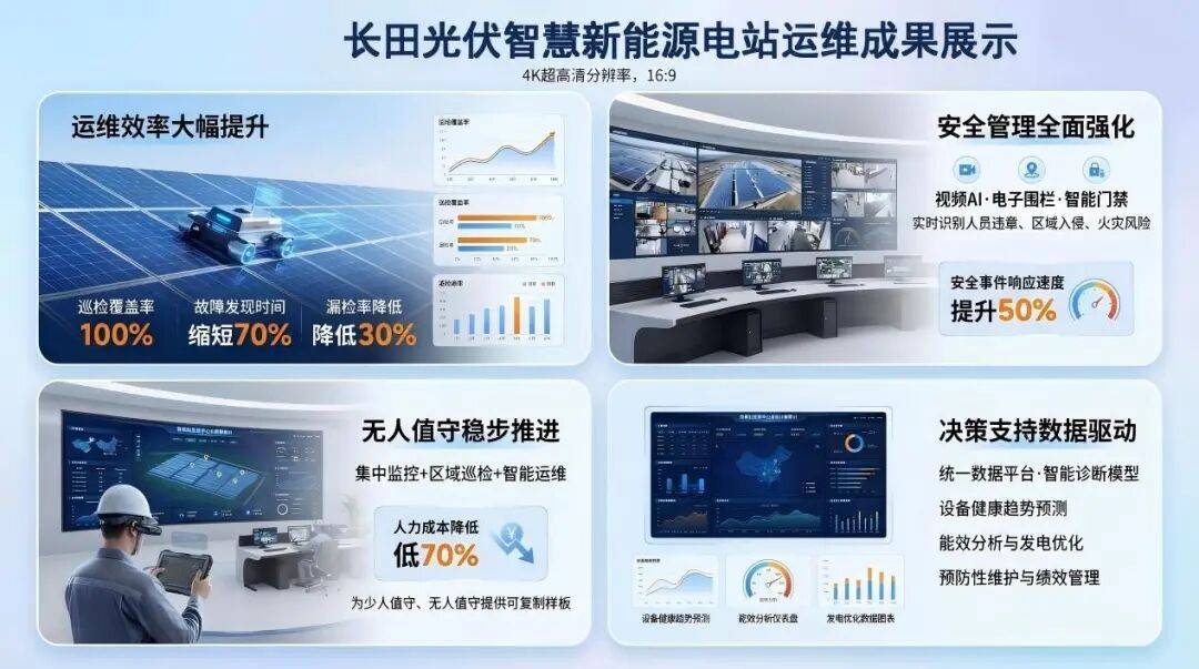 项目建成后,长田光伏电站初步实现了从“人工为主、系统为辅”到“系统主导、智能协同”的运营模式转变,成效显著: